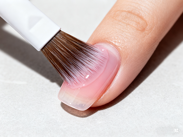 取胶过多易导致边缘堆胶,过少则出现透甲或刷痕。要在刷头蘸胶后,在瓶口轻刮两下,去除两侧多余胶体,仅保留刷头中部适量胶液,确保第一笔落在甲面中央时不溢胶。