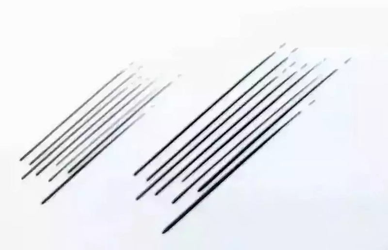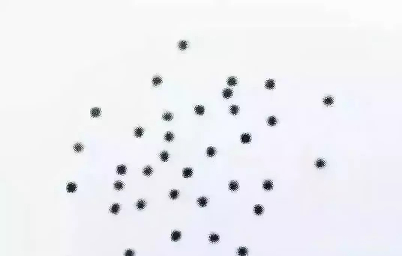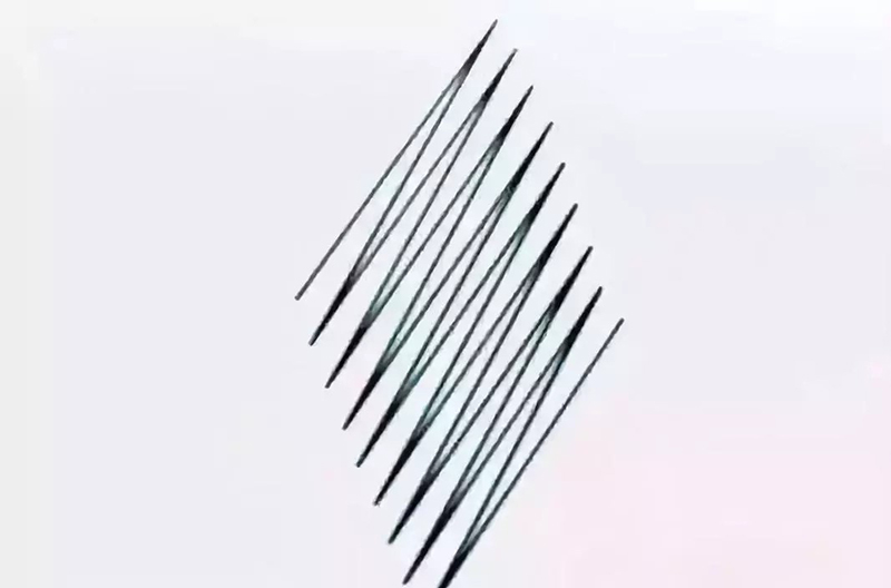 运用机器施术时,运用90°垂直于施术表面进行短促的来回上色,最终形成的线条颜色。