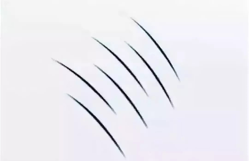 通过手持刀片,90°垂直操作表面画出仿造一根根眉毛形状的线条。