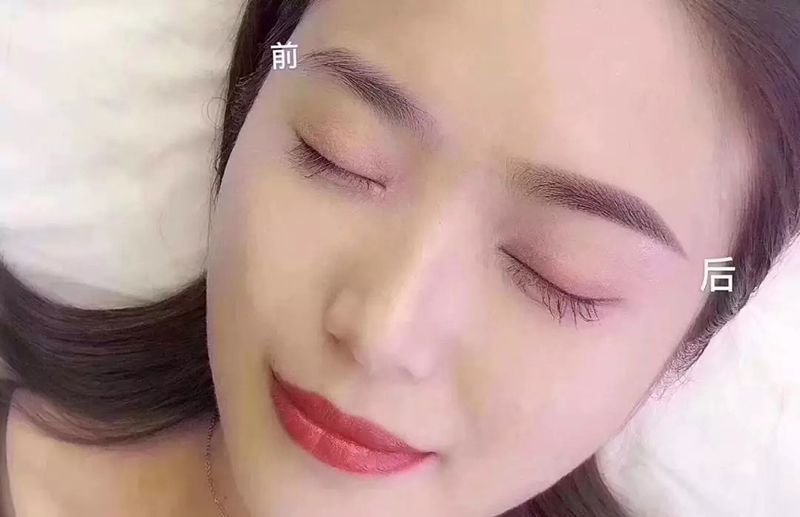建议用点刺或者扫刺的方式操作,操作的手法一定要轻。线条眉操作时要顺着眉头毛发的自然生长方向进行排线,眉头以短线为最佳。雾眉眉头需要轻浅填色忌做成方型,颜色忌过实过重。